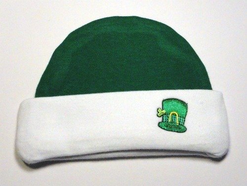 A little luck of the Irish!Very soft, 100% cotton interlock knit.Kelly green hat with a white brim anda dark green Leprechaun's hat applique.Five premature infant and newborn baby sizes!Micro preemie 0-3 pounds; small preemie 3-6 pounds;small infant 5-8 pounds; newborn 8-12 pounds and3-6 months to 16 pounds. Please select when ordering.By Jacqui's Preemie Pride Read more...
