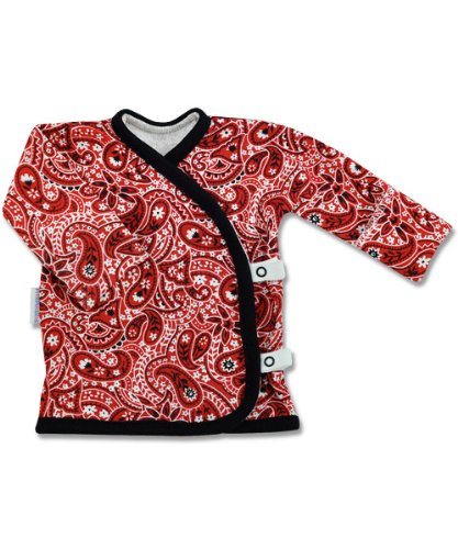 Bandana Side Snap-T is a cool 100% cotton print filled with a fun paisley pattern and nicely trimmed with black cotton ribbing. It offers fold back mittens and easy dressing with two snaps on each side. This style provides excellent access in the NICU allowing for any monitor leads.