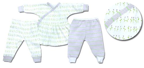 The side snap design makes for very easy dressing with the snaps on each side. Just open up the dress and then fold and snap up around baby! This style allows for NICU use as well as "take me home."Two sets of matching leggings:
