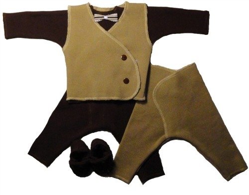 We love this new suit!100% soft cotton knit.Brown long sleeve shirt with velcro closuresfor easy on/off access.White bow tie with brown and tan stripes, on collar.Tan ribbed vest (looks like corduroy) with velcro closure and brown faux buttons.Two pairs of pants! One brown, the other tan ribbed.Velcro closure at waist for soft, adjustable fit.Brown loafer shoes with brown tassels.Available in five premature infant and newborn baby sizes: Under 1.5 pounds;micro preemie 0-3 pounds; small preemie 3-6 pounds;small infant 5-8 pounds and newborn 8-12 pounds.By Jacqui's Preemie Pride Read more...