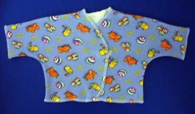 Too cute and so soft! 100% soft cotton interlock knit Blue long sleeve shirt with blocks, airplanes, ducks etc. Velcro closure on front for easy on/off access. Four sizes: micro preemie 0-3 pounds; small preemie 3-6 pounds; small infant 5-8 pounds or newborn 8-12 pounds. By Jacqui's Preemie Pride Read more...