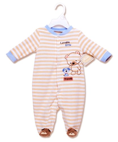 Baby Starters adorable one piece coverall is great for baby boys to wear everyday. Soft and cozy velour fabric in subtle tan stripes with a luvable pair of friends appliqued on the front and novelty bear feet. Does it get any cuter than that. Read more...