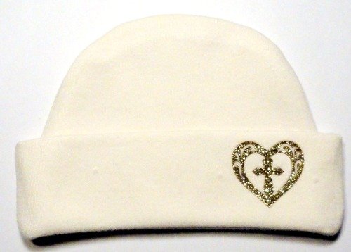Free Shipping Ivory Baby Hat with Gold Cross Heart @ Amazon.com