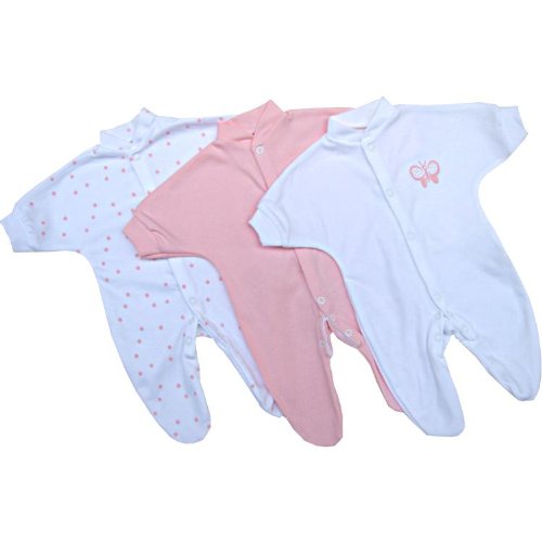 Premature Early Baby Clothes Pack of 3 Sleepsuits / Babygros 1.5 - 7.5lb Pink Review