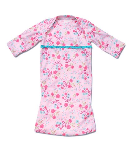 This little floral outfit simply exudes sweetness, full of pink, fuchsia, and aqua flowers. Made with care from soft, lightweight cotton ribbed knit, this print is trimmed with an aqua ruffled elastic, giving it a wonderfully femine touch.